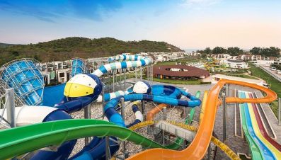 детски басейн, детски аквапарк с 5 водни пързалки, детски ресторант, детска площадка, анимация, приключенски парк (въжен парк, стена за катерене, Free Fall, Zipline, от 7-17 години)