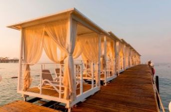 200 м плажна ивица с кей с безплатно ползване на хавлии, шезлонги, хамаци и възглавници.