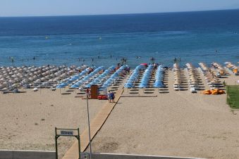 ПЛАЖ: Собствен, пясъчен – чадъри и шезлонги на плажа и при басейна – безплатно.