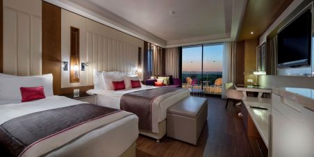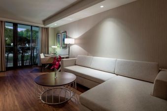 Фамилните стаи са с изглед море или изглед градина. Площ 55 кв. м. и максимален капацитет 4 възрастни и 1 дете. С 2 спални и 2 бани.