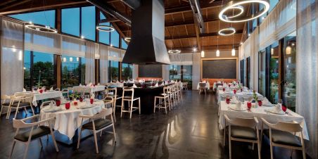 Основен ресторант, 6 а ла карт ресторанта - световна кухня, италианска, гръцка, далечноизточна кухня, стек хаус, тепаняки, сладкарница, гьозлеме, фууд корнър с пица, сандвичи, дюнери, плодове, сладолед и др., 9 бара.