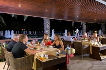 Основен ресторант на Ultra All Inclusive база от 07:00 до 21:00 часа. Снек ресторант, бистро и места за гьозлеме, дюнер, пица, сандвичи и други. 10 бара, сладкарница и 4 а-ла-карт ресторанта - турски, морски, източен, италиански.