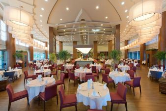 Настаняване на Ultra All Inclusive база на отворен бюфет в основен ресторант. 6 а-ла-карт ресторанта: италиански, източен, грил, морски, турски, барбекю. Снек бар, гьозлеме, кафене, 9 бара.