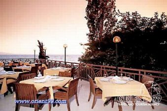 Хотелът разполага с основен ресторант с външна и вътрешна секция (шведска маса), 2 бара, TV - зала