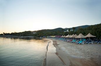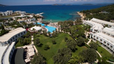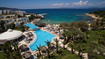 В залива Торба, на брега на морето, на площ от 70 000 м2 , на 8 км от центъра на Бодрум, 25 км от летището.