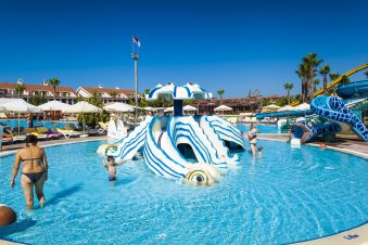 1 основен и 3 ала карт ресторанта, ресторант на плажа и в аквапарка, лоби бар, 7 бара, 1 олимпийски басейн, релакс басейн, детски басейн, закрит отопляем басейн с детска секция, Аквапарк с 14 пързалки, Лунапарк, мини зоопарк, дискотека, СПА център, магазини