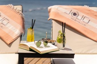 Платформа, чадъри, шезлонги и матраци на басейна и на плажа - безплатно.