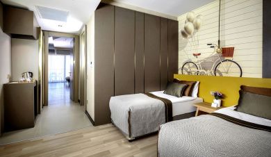 Стандартни стаи (35 кв. м.), стаи с директен излаз на басейна (35 кв. м.),, фамилни стаи (55 кв. м.).