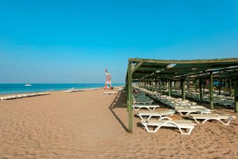 Собствен плаж на 450 м. от хотела. Безплатни чадъри и шезлонги.