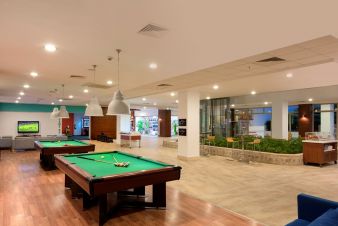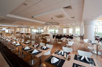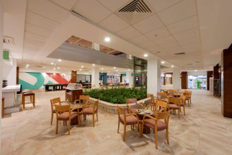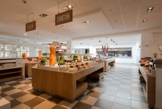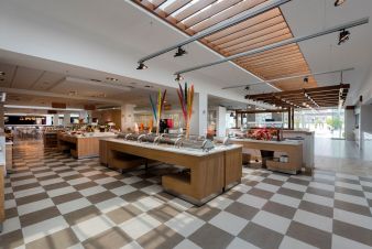 Основен ресторант с отворен бюфет, а ла карт ресторант Terrace & Grill, бар край басейна, снек бар на плажа, сладоледен бар, кафене.