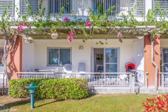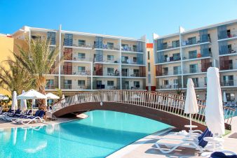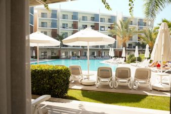 Суити с изглед градина и море. Площ 40 кв. м. със спалня, кухненски бокс и балкон. Суитите с изглед към морето са с кухня и дневна част. Оборудвани са с микровълнова, хладилник, тостер.
