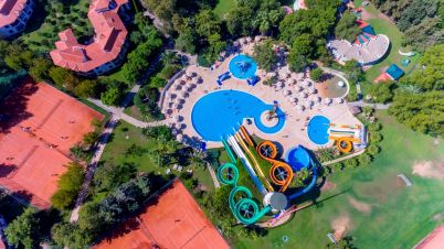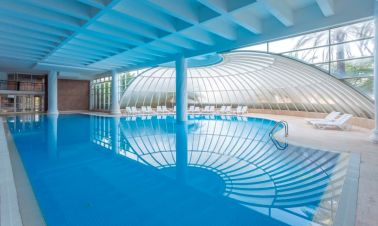 Вътрешни и външни басейни за възрастни с детски сектори, аквапарк, гимнастика, аеробика, фитнес, зумба, пилатес, табата, анимация, музика на живо, тематични партита.