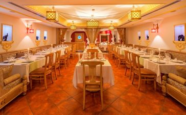 Ultra All Inclusive база - основен ресторант с 400 места вътре и 700 места на тераса на открито. Ресторант за възрастни, снек ресторант, бистро. А ла карт ресторанти - турски, индийски, мексикански, монголски - 1 път за престой безплатно с резервация. А ла карт ресторанти срещу заплащане - френски, италиански, руски, далечноизточен, японски, морски.