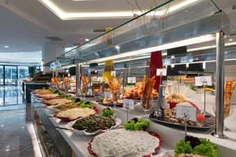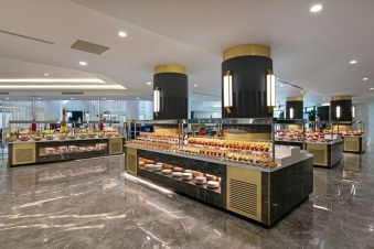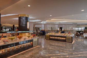 Ultra All Inclusive база. Основен ресторант с бюфет, а ла карт ресторанти за турска, азиатска, италианска кухня. Лоби бар, тераса бар, снек бар на плажа, бар на басейна, кафене, дискотека.