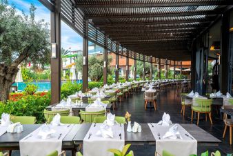 Основен ресторант с отворен бюфет, 2 а ла карт ресторанта - средиземноморска и турска кухня; лоби бар, бар на плажа, бар край басейна, дискотека, снек бар.