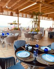 Основен ресторант - отворен бюфет. А ла карт ресторанти - ROUGE ROOF за турска кухня, MARE за морска, възможност за специална вечеря на плажа (с доплащане). Лаундж и тераса бар, бар край басейна, кафене, бар на плажа, бар към детския клуб в аквапарка.