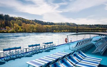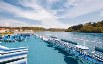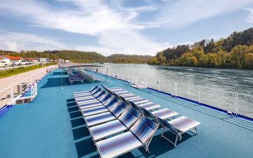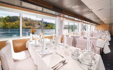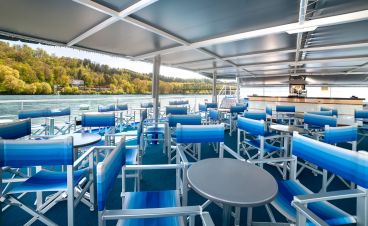 На борда ще откриете, ресторант, панорамен бар, слънчева палуба с шезлонги и басейн, малък фитнес и сауна.