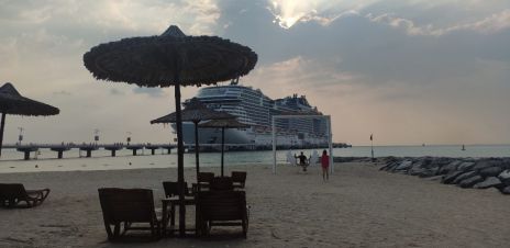 12.11.2025: Абу Даби (ОАЕ) – престой от 07:00 ч. до 21:00 ч. Туристическа програма по желание: целодневна екскурзия до Абу Даби с екскурзовод на български, включен обяд и посещение на арабския Лувър – продължителност около 8 часа (с доплащане 195 лв. / 99.70 € за възрастен и 185 лв. / 94.59 € за дете до 11 г., и при предварителна заявка и заплащане в България, а не на място; цената включва транспорт, екскурзоводско обслужване, изискан обяд на блок маса в Абу Даби, входна такса за Лувъра и описаната програма; организира се при минимум 10 участника). Столицата на Обединените арабски емирства е в същото време и най-голямото от общо седемте емирства, което впечатлява с луксозните вили и дворци, с кристалните сини води на залива и крайбрежните острови. Турът започва с посещение на третата по големина джамия в света – величествената „Шейх Зайед“ (има строго изискване за облеклото: мъже – дълги панталони, тениски или ризи с къс/ дълъг ръкав; жени – дълги панталони или дълги поли до глезените, блузи или ризи с дълъг ръкав до китките, шал за главата; не се допускат тесни, прилепнали по тялото и прозрачни дрехи). Програмата продължава с фотопауза при хотел Emirates Palace. Обяд. Посещение на арабския Лувър – първият музей в Арабския свят, посветен на моста между източното и западното изкуство. Този уникален музей представя историята на човечеството от тpетото xилядолетие пp.н.е., пpез Средновековието, Ренесанса, неокласицизма до нашето съвремие в 12 различни галерии, всичките подредени съвършено под впечатляващия 180-метров купол, през който слънчевите лъчи преминават като „дъжд от светлина и сенки“. Музеят е шедьовър на архитекта Жан Нувел. Представени са над 600 произведения, от които 300 са предоставени от парижкия Лувър за ползване за период от 10 години. Сред тях са творби на Пол Гоген, Пикасо, Ван Гог, Леонардо да Винчи, както и древни паметници и произведения на изкуството от Близкия Изток. Завръщане на борда на кораба най-късно в 19:30ч. Нощувка.