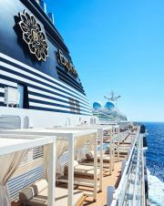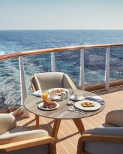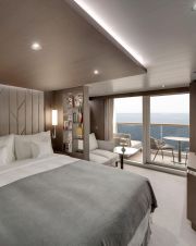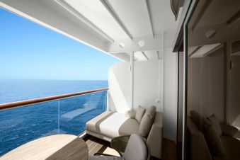 - Характеристики на апартаментите: Всички апартаменти са с изглед море/океан. Обща площ на апартамента: 35 кв.м Апартамент: 28 кв.м Тераса: 7 кв.м Максимален капацитет: 2 възрастни и 1 дете до 18г Големи прозорци от пода до тавана с изглед към морето Дневна зона с маса за кафе и хранене Бутилка Veuve Clicquot Yellow Label за добре дошли в апартамента Мини-бар, допълващ се според предпочитанията на гостите Машина за еспресо, чайник и кана за чай с безплатна селекция от кафе и чай Безплатна персонална бутилка вода за многократно пълнене за всеки гост Чифт бинокъл за ползване от гостите по време на пътуването им Възможност за включване на повечето таблети и лаптопи Просторна тераса с кът за хранене към океана Удобно легло за почивка на терасата Голямо легло - размер: 180 x 200 см. Някои апартаменти са с две единични легла - размер: 2 x 90 x 200 см Пухени завивки и възглавници Фино спално бельо от Frette Богат избор на възглавници Просторен гардероб Просторна баня с душ кабина и подово отопление Плюшени халати от Frette Тоалетни принадлежности и принадлежности за баня Dyson Supersonic TM сешоар и осветено огледало за грим/бръснене Описание на кораба: Дължина: 248 м Тонаж: 63 900 GT Три открити басейна и един закрит басейн с подвижен стъклен покрив Над 700 кв. м уелнес съоръжения на закрито и на открито Над 270 кв. м фитнес съоръжения с най-новото оборудване Казино, художествена галерия и бутик