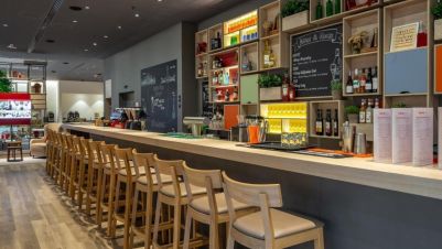 Бар и бистро – сервира алкохолни напитки и коктейли, кафе, освежаващи напитки и малки закуски / топли ястия.