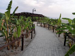 Плаж: Собствен плаж с чадъри и шезлонги, на 1 км разходка през красива борова гора.