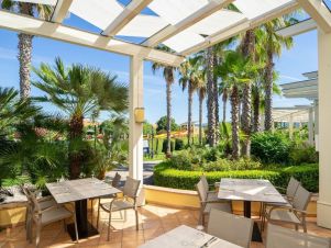На територията на хотела: На своите 124 хиляди кв.м площ, хотелът разполага с 5000 кв.м басейни, водни пързалки, спрей парк, собствен плаж с чадъри и шезлонги, СПА и красива борова гора между хотела и плажа. 3 бюфет-ресторанта, 1 а ла карт, барбекю и бар на плажа, общо 4 бара и кафе-сладкарница. Хотелът предлага средиземноморска и интернационална кухня и проявява специални грижи за туристи с алергии или такива на специален режим (необходимо е уведомление). Acquapura SPA , възползвайте се от различни масажи и козметични процедури, фитнес зала, сауна, зона релакс. Игрища за тенис и плажен волейбол. Амфитеатър за вечерни забавления и музика на живо.