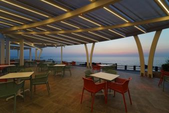 На територията на хотела: Комплексът разполага с просторна зона, включваща открит басейн, детски басей, спортни игрища (плажен волейбол, тенис, футбол и др.), анимационна програма за гости и добре поддържани зелени площи. Гостите могат да се насладят на бар и ресторант с панорамна гледка към морето. Хотелът разполага с амфитеатър, който предлага различни представления- мюзикъли и кабарета, както и анимация за гостите. Аеробика около басейна, уроци по гмуркане с възможност за получаване на официален сертификат за свободно гмуркане SSI (Scuba Schools International,) водна гимнастика, танци в нощния бар на хотела, специални занимания за най-малките. На плажа- възможност за практикуване на падел борд и кану каяк. WiFi в общите части на хотела.