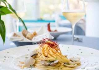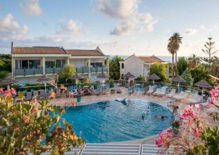 Плаж: Частен пясъчно-камъчен плаж на 300 м от хотела (1 брегова линия), слизане по стълби, трансфер до плажа, срещу заплащане. Чадър и 2 шезлонга на стая безплатно, кърпи срещу заплащане.