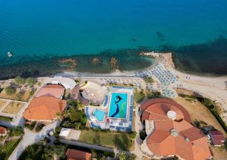 Плаж: Частен пясъчен и скалист плаж на 5 м от хотела (1 брегова линия). Чадъри, шезлонги: безплатно.