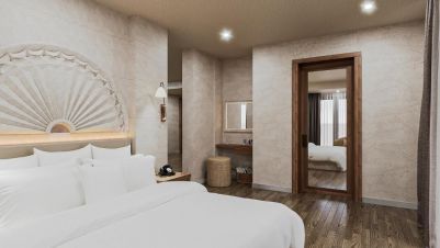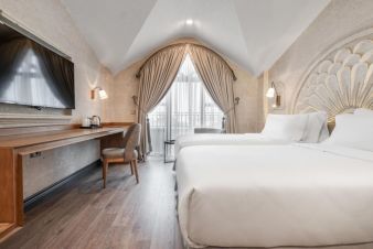 В стаите: Хотелът разполага с общо 170 просторни стаи с уникална атмосфера и всичко, от което се нуждаете. Deluxe Room - Луксозните стаи са проектирани с всичко необходимо за комфортен и уютен престой. Предлагат се с балкон или тераса и всички имат безплатен Wi-Fi, телевизор, климатик, телефон, минибар, сет за приготвяне на чай/кафе, парна ютия, сейф и сешоар; баня с душ; Deluxe Room with Balcony - Делукс стаята e със самостоятелен балкон, просторна и светла стая с много естествена светлина и позволява двойно легло или две единични легла. Разполагат с климатик, телевизия, Wi-Fi, минибар, сейф, баня с душ кабина, сешоар, чехли. Deluxe Room with Terrace - Проектирани за поставяне на двойно легло или 2 единични легла, тези стаи имат много естествена светлина и предлагат перфектната комбинация между комфорт и функционалност. Акцентът на тези стаи е частната тераса, където гостите могат да релаксират на открито. Разполагат с климатик, телевизия, Wi-Fi, минибар, сейф, баня с душ кабина, сешоар, чехли.
