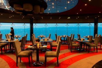 Корабът разполага с няколко заведения за хранене – основен ресторант, разположен на 2 дека, два бюфета на самообслужване, ала карт ресторанти: американски стек хаус Butcher’s Cut, Суши бар, Вила роса – панорамен ресторант.