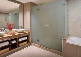 В стаите: Стаята разполага с телевизор, централен климатик, минибар, сейф, вана или душ, сешоар, телефон, удобства за приготвяне на чай и кафе, ютия, керамично покритие, интернет, халати и чехли. Осигурен е и рум-сървис.