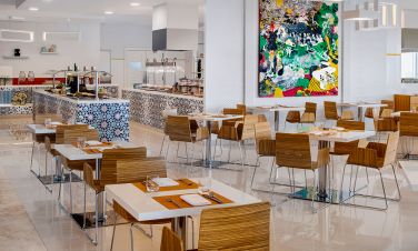 Интернационален ресторант 365 ALL DAY DINING, CAFÉ JAVA предлага пресни френски сладкиши и леки закуски, богата селекция от кафе Nespresso и чай, бар до басейна DECK SE7EN с изглед към Шейх Зайед и Джумейра предлага тропически коктейли, бар FLYING ELEPHANT.