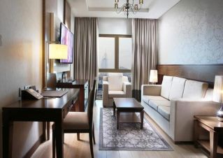 В стаите: Стаята разполага с телевизор, сателитна телевизия, минибар с безплатна вода, сейф, телефон, душ, сешоар, безплатен Wi-Fi, климатик, халати и чехли, както и ютия с дъска за гладене, които се предоставят при поискване. Освен това стаята разполага с комплект за приготвяне на чай и кафе.