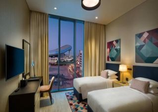 Разположение: Хотелът се намира в района на Ал Барша, на 28 км от международното летище Дубай (DXB), на 54 км от летище Шарджа и на 110 км от летище Абу Даби.
