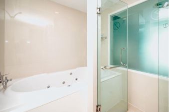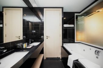 Suite - разположен на 6-ия и 7-ия етаж, този просторен суит разполага със самостоятелен балкон с хидромасажна вана, 54 м2, една спалня + дневна с диван и масчика за кафе разделени с полуврата, едно двойно легло king size. Стаята е оборудвана с безплатен WiFi, тоалетни принадлежности, кърпи, електронно заключване на врати, телевизор с плосък екран телефон, мини хладилник , климатик, баня с душ, сейф, сешоар, електрическа кана, сет за приготвяне на чай/кафе, балкон/ тераса.