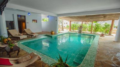 AHG Waridi Beach Resort and Spa е елегантен комплекс, съчетаващ традиционна занзибарска архитектура с модерни удобства. Сред зеленината на кокосови палми и тропически градини, хотелът предлага спокойна атмосфера и комфорт за двойки, семейства и групи приятели. Разполага с открит басейн с гледка към океана, спа център, фитнес зона и анимационна програма.