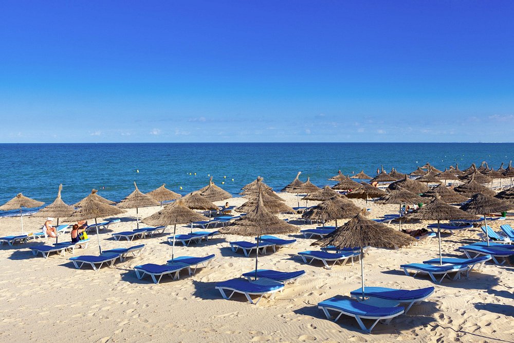 Собствен, широк и пясъчен плаж пред хотела. Чадъри, шезлонги и матраци на плажа и басейна - безплатно. Плажни кърпи - безплатно, срещу депозит.