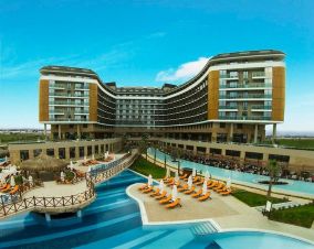 Разположение: Хотелът се намира на 12 км. от летището на Анталия, в района на Лара, на 350 м. от собствен пясъчно - чакълест плаж. Построен през 2014 г. с обща площ от 62 000 м2.