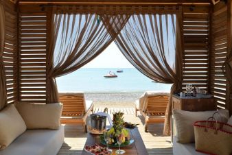 Плаж: Cобствен пясъчно-чакълест плаж на 150 метра от основната сграда, първа брегова линия. Дължината на плажа е 300 м. Шезлонги, чадъри/сенници, матраци, плажни кърпи са безплатни. Влизане в морето - камъчета, пясък. Бар, снек бар на плажа, бар на кея, душове, съблекални, спасители. VIP павилиони с бял пясък (с предварителна резервация, срещу заплащане, оборудвани със сейф, минибар, отделен душ и шезлонги, предназначени за 4 души), зона 16+ (безплатно), кей.