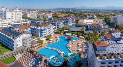 Grand Seker Hotel се намира в Сиде. Комфортните стаи са оборудвани с балкон, климатик, сателитна телевизия, минибар, сейф и самостоятелна баня със сешоар. Хотелът разполага с ресторант и барове във фоайето, край басейна и на плажа. Предлага открити плувни басейни с водни пързалки, закрит басейн, спа център, сауна, турска баня, конферентна зала и фитнес зала.