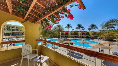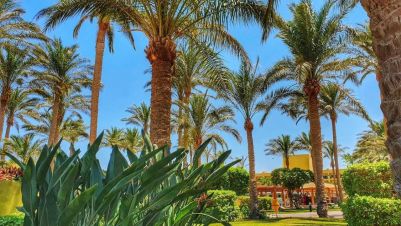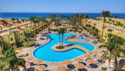 Palm Beach Resort 4* е обзаведен в модерен стил, а обстановката и атмосферата са традиционни за Египет. Хотелът разполага с прекрасни гледки към Червено море, с 2 басейна, собствен пясъчен плаж и клуб по гмуркане. Гостите на хотела имат на разположение още: ресторант с международна кухня, бар с напитки и леки закуски, релаксиращи масажи, сауна и фитнес, екип от аниматори, организиращи различни занимания и игри през целия ден. Центърът по гмуркане - The Caves, предлага различен тип водни спортове, като гмуркане, шнорхелинг и уиндсърф.
