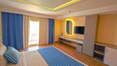 Приблизителна площ на помещението - около 25 кв.м. Разполага с телефон, сателитна телевизия, сешоар, сейф, мини бар - срещу допълнително заплащане, електрическа кана с чай и кафе, климатик, баня с тоалетна и тераса.