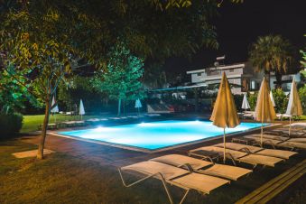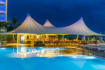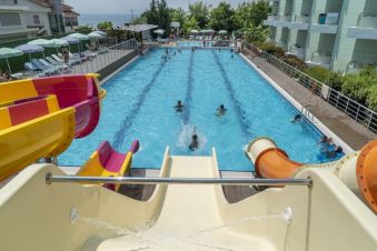 Хотелът има собствен пясъчен плаж. За удобство на гостите си предлага 2 открити плувни басейна - един за възрастни и един детски, 1 закрит басейн, водни пързалки. Чадъри и шезлонги при басейна и на плажа се предоставят безплатно.