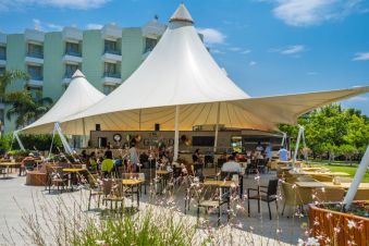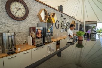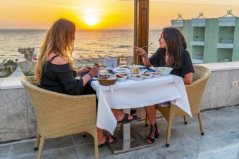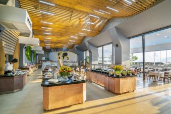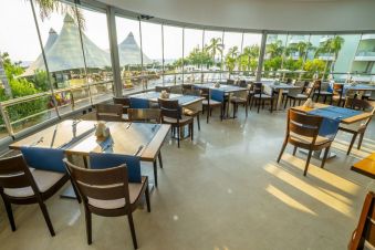 На разположение на гостите са 1 основен ресторант със закрита и открита секции и 1 а'ла карт ресторант, в който поднасят морски деликатеси. На територията на хотела има 5 бара - лоби бар, воден бар, бар на тераса, витаминен бар и диско бар. All Inclusive концепцията включва закуска, обяд и вечеря на блок маса, допълнителни хранения, местни алкохолни и безалкохолни напитки.