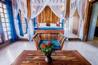 Хотелът настанява гостите си в климатизирани стаи и суити с изглед към Индийския океан или градината. Мебелирани в местен стил, стаите са оборудвани с телевизор, минибар, сейф и мрежи против комари, баня с душ/вана, сешоар. Стаите с двойно и 2 отделни легла са разположени на горен етаж и предлагат балкон с изглед към морето. По-просторните суити са с кът за сядане и веранда с морски изглед или с изглед към градината.