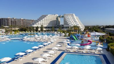 Разположен в Лара, Анталия, хотел Miracle Resort 5* предлага специални удобства за тези, които биха искали да имат една необикновена ваканция в допир с всички нюанси и възможности, които дава природата и в комбинация с комфорта, отличния вкус и забавленията на хотела.