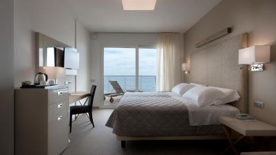 Двойна стая с фотьойл и тераса към морето; безплатен Wi-Fi, климатик, баня с тоалетна, душ, сешоар, хладилник, електрическа кана, сейф, сателитна телевизия.Тераса: 10-12 кв.м