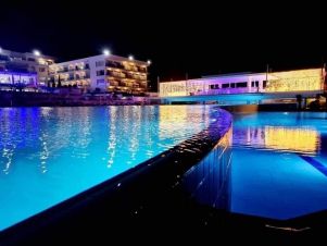 Плаж: Хотелът се намира на 1-ва линия и разполага с пясъчно-чакълест плаж. Шезлонги, чадъри са безплатни.