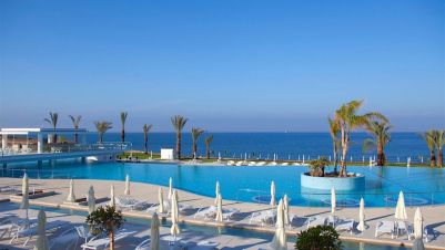 King Evelthon Beach Resort се намира до плажа в град Пафос. Той предлага стилно обзаведени стаи с климатик, СПА център, воден парк, открит и вътрешен басейн, както и разнообразие от ресторанти и барове. Барът на хотела сервира коктейли и освежаващи напитки. Гостите могат да посетят спа и уелнес центъра с разнообразни процедури. Можете да поддържате форма във фитнес центъра. На място има също тенис кортове и игрище за минифутбол.